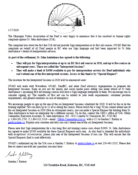 OVAD WINS ST JOHN AMBULANCE INTERPRETING RIGHTS CASE!!