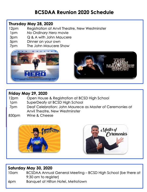 BCSDAA Reunion 2020 Schedule – May 28-30