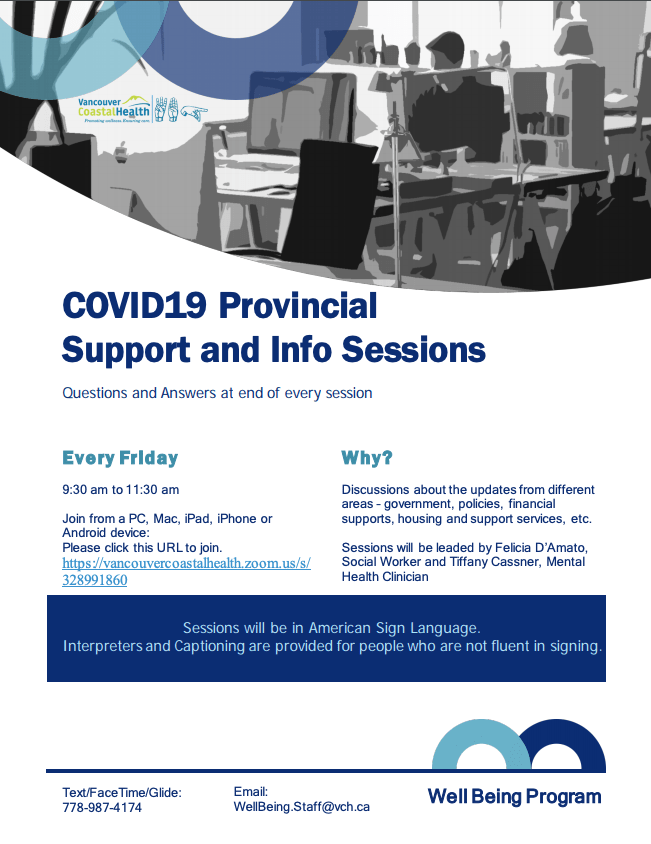 You can see our updates at http://deafwellbeing.vch.ca/covid-19-updates/