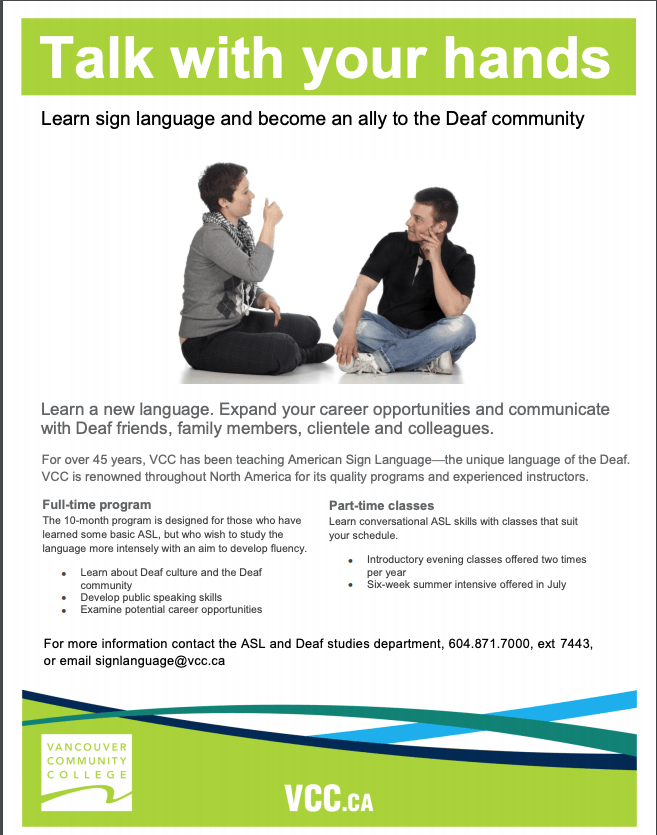 Want to know more about VCC’s ASL & Deaf studies programs and courses?