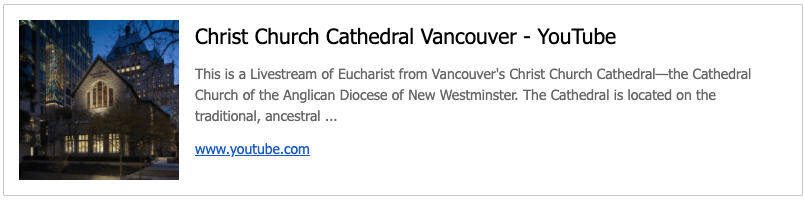 Every Sunday at 1030 am, ASL interpretation is provided at Christ Church Anglican Cathedral in Vancouver. Christ Church Cathedral is an open inclusive community. During COVID 19, you can join online at https://www.youtube.com/ channel/ UChGfh54nYryKFzlSnjvO2qw
