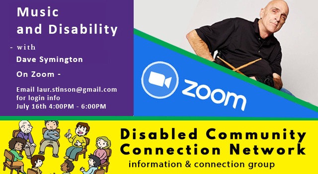 We would like to invite you to our upcoming Disabled Community Connection Network (DCCN) session on the topic of “Music and Disability” This session will feature Dave Symington, he has had a disability (C5-6 quadriplegic) since a diving accident in 1975. He has been involved in disability advocacy, program and service development, and community integration for almost 40 years. He has worked extensively in the post-secondary education system as a special education coordinator, service provider, policy driver, and awareness and team builder. Dave co-founded the Vancouver Adapted Music Society with Sam Sullivan some 30 years ago. He sits on numerous boards and committees and is very active in sexual health advocacy, music, sailing, and travel.