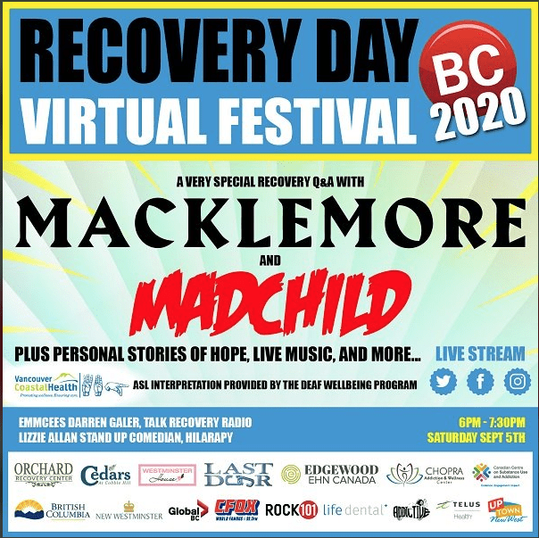 Recovery Day BC – #OvercomingAddiction Virtual Festival TODAY (Sept 5) at 6 pm to 7:30, a perfect time to gather in small gatherings over dinner and show.