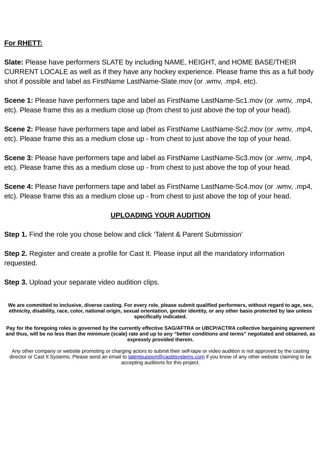 RHETT – This character is male, any ethnicity. He is team captain of the high school hockey team, The Grizzlies. After an accident, he is left completely deaf…SERIES REGULAR. ACTORS WHO ARE DEAF OR HARD OF HEARING ARE ENCOURAGED TO APPLY. HOCKEY EXPERIENCE PREFERRED BUT NOT MANDATORY. TALENT MUST BE 18+.