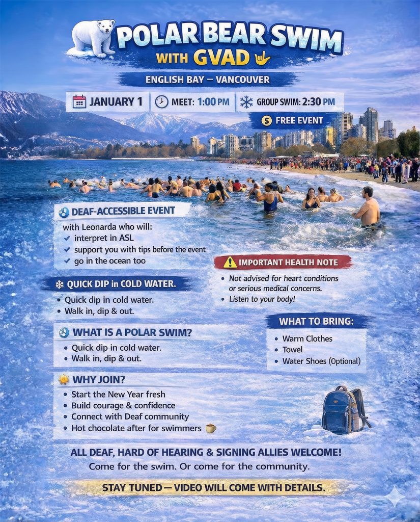 Start the New Year fresh, build courage and confidence, connect with the Deaf community, and enjoy hot chocolate after for swimmers.